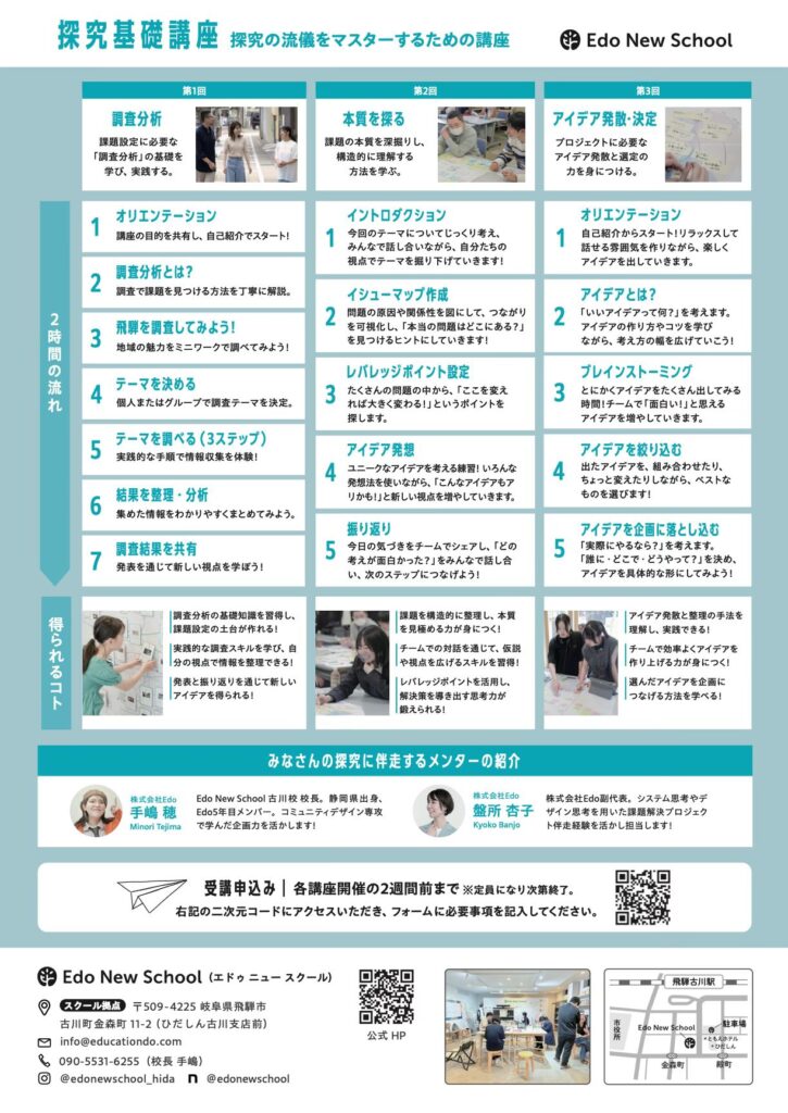 場所:Edo New School(岐阜県飛騨市古川町金森町11-2) ※ ひだしん古川支店前