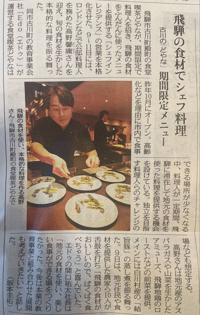 シェフが地域に滞在し、生産者の皆さんや食材と語らいながら紡がれた一皿一皿。滞在を通じて生まれた、食と人と風土の共創をお楽しみいただきました。ご協力いただいた皆さま、お越しいただいた皆さま、取材いただいた中日新聞さま、本当にありがとうございました。