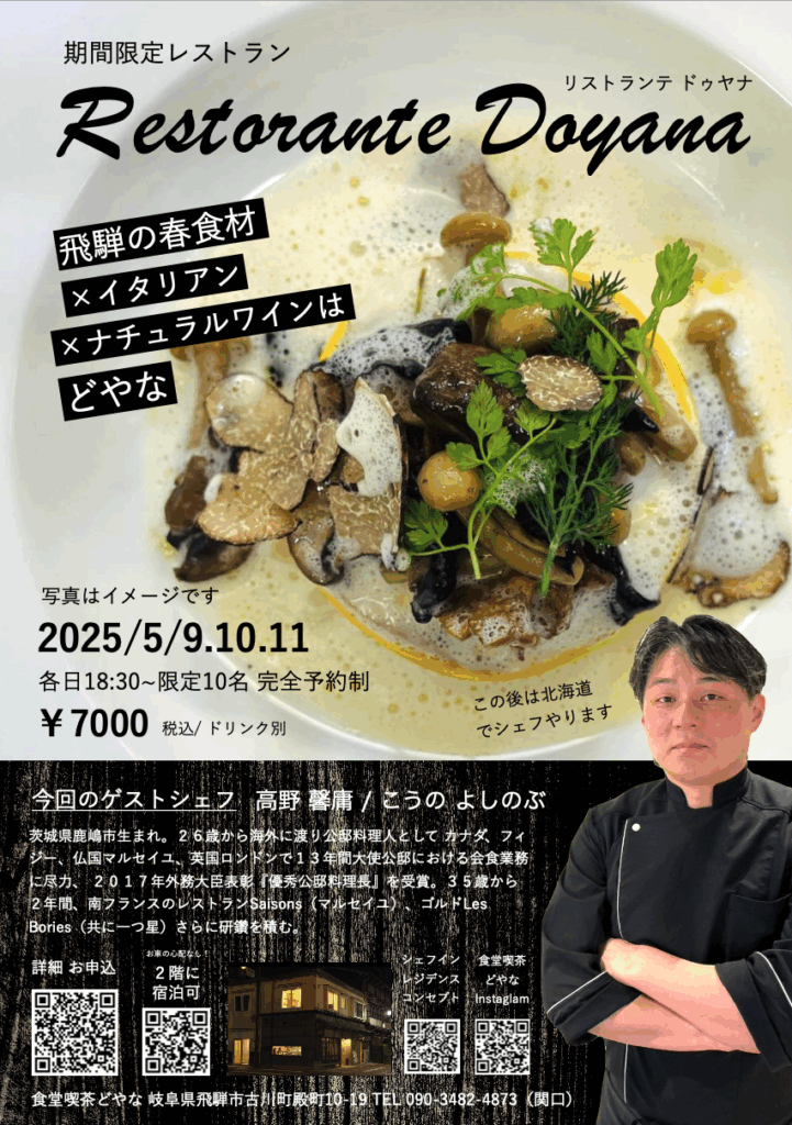 5/9~11にかけて弊社運営の食堂喫茶どやなにて開催した、期間限定レストラン「Restorante Doyana(リストランテ・ドゥヤナ)」