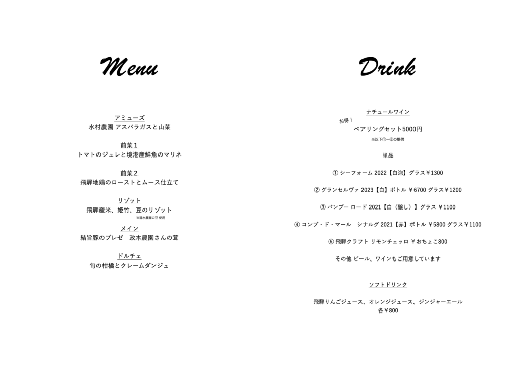 今回は、元イギリス大使館の公邸料理人でもあるイタリアンシェフに2階ゲストハウスに滞在いただき、春の飛騨食材をふんだんに使ったコース料理をお届けしました。